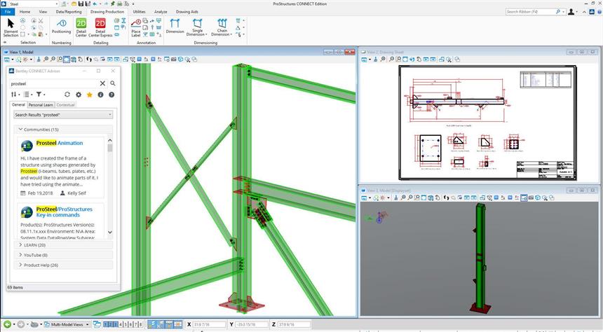 借助 ProSteel,結(jié)構(gòu)工程師、詳圖設(shè)計(jì)師和加工廠技術(shù)人員都能夠高效、準(zhǔn)確地創(chuàng)建鋼結(jié)構(gòu)模型和文檔。ProSteel 提供了一個(gè)直觀的三維建模系統(tǒng),該系統(tǒng)非常適合于應(yīng)對(duì)復(fù)雜的鋼結(jié)構(gòu)并提取鋼結(jié)構(gòu)設(shè)計(jì)圖、加工詳圖和安裝圖,并在三維模型發(fā)生更改時(shí)自動(dòng)更新圖紙。此外,還可以自動(dòng)插入和實(shí)時(shí)更新詳圖材料表和單獨(dú)的零構(gòu)件材料表及物料清單。